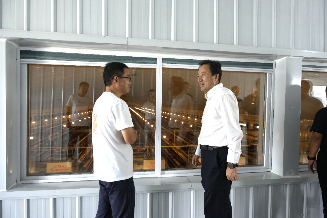 調(diào)研組隨后實(shí)地走訪蛋雞養(yǎng)殖舍,朱總介紹道,目前蛋雞存欄量穩(wěn)定在60萬(wàn)羽,年產(chǎn)蛋量過(guò)萬(wàn)噸,智能化管理大大提高蛋雞成活率,遠(yuǎn)超傳統(tǒng)養(yǎng)殖水平。隨后,白書(shū)記詢問(wèn)企業(yè)二期工程進(jìn)展,并對(duì)此表示期待,鼓勵(lì)企業(yè)加快建設(shè)進(jìn)度,早日形成更大產(chǎn)能、發(fā)揮更強(qiáng)帶動(dòng)作用。他強(qiáng)調(diào),畜牧業(yè)是保障民生供給、推動(dòng)鄉(xiāng)村產(chǎn)業(yè)振興的重要支柱,易豐農(nóng)業(yè)要持續(xù)發(fā)揮示范引領(lǐng)作用,進(jìn)一步強(qiáng)化科技支撐,優(yōu)化生產(chǎn)管理,嚴(yán)格把控產(chǎn)品質(zhì)量安全,不斷提升產(chǎn)業(yè)競(jìng)爭(zhēng)力;相關(guān)部門(mén)要主動(dòng)對(duì)接企業(yè)需求,做好政策扶持與服務(wù)保障,共同推動(dòng)全區(qū)畜牧業(yè)高質(zhì)量發(fā)展。