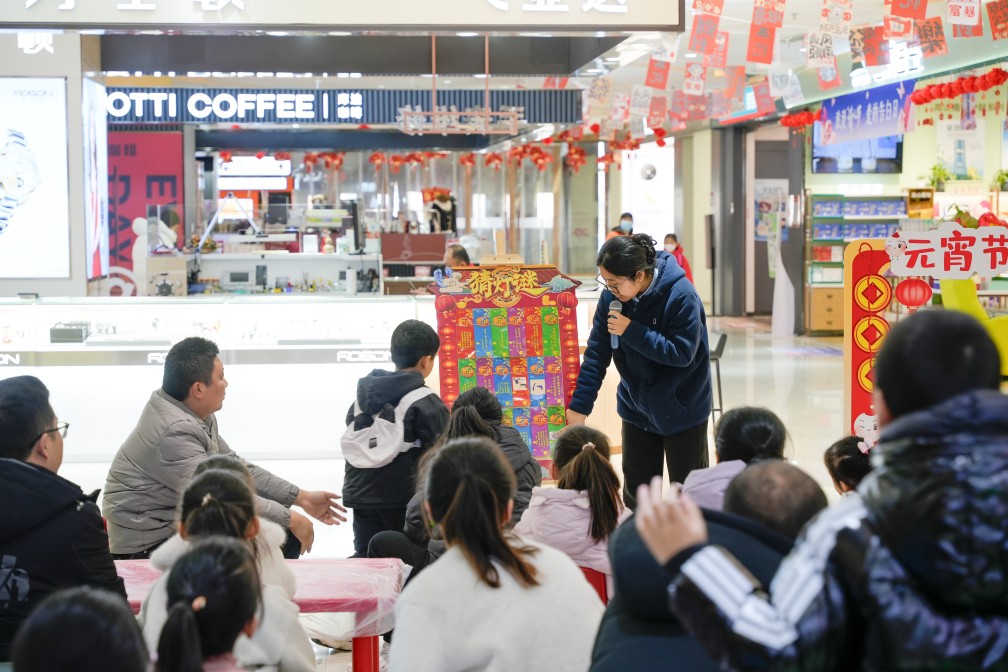 華百廣場內(nèi),工作人員們精心準備了各類燈謎,內(nèi)容涵蓋了詩詞歌賦、歷史典故、生活常識各個領(lǐng)域,既有趣味性又具知識性。每一次謎底的揭曉,都是智慧碰撞出的火花,讓大家在歡樂中感受傳統(tǒng)文化的博大精深。每當(dāng)工作人員念完“燈謎”后,孩子們便紛紛舉手回答,現(xiàn)場氛圍歡快熱烈,工作人員為猜對的家庭發(fā)放精美禮品,更加激發(fā)了大家的參與熱情。通過沉浸式文化體驗,在傳統(tǒng)民俗中傳遞溫暖親情,增強民族文化自信。