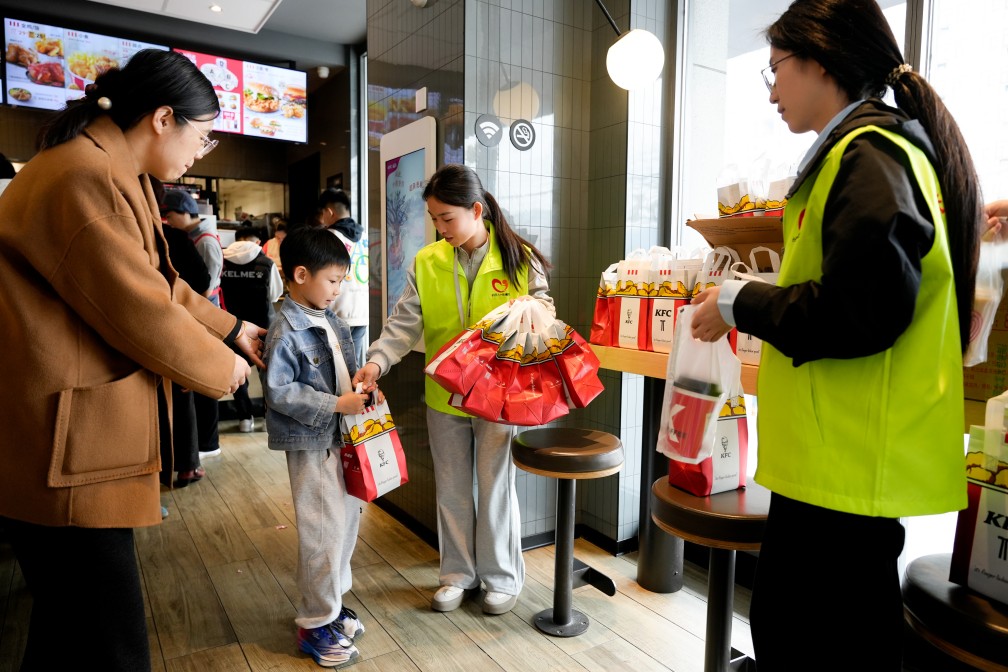 觀影結束后,肯德基正安路餐廳店為孩子們精心準備了兒童套餐。“哇,是肯德基!”孩子們興奮地喊道,眼睛里閃爍著興奮的光芒??系禄墓ぷ魅藛T細心地為孩子們服務,確保他們能盡情享受這次特別的用餐時光。