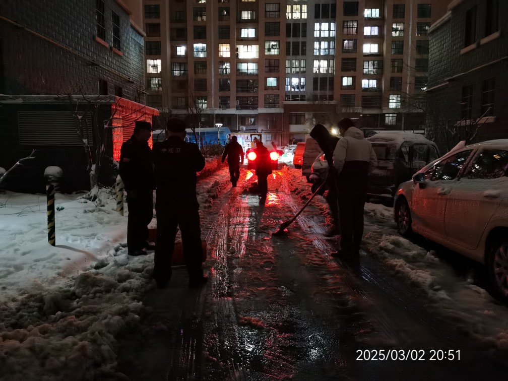 2月28日開始,長田物業(yè)通過微信群、公眾號等宣傳方式,將氣象預(yù)警信息廣泛及時推送給業(yè)主,做好全面排查、加強災(zāi)害防范,有效應(yīng)對極端天氣可能引發(fā)的各項安全問題;降雪當日,物業(yè)主要負責同志全天在崗在位進行統(tǒng)一指揮、抓好執(zhí)行落實。各部門按職責落實防范措施,緊盯重要點位,及時巡查檢查,形成應(yīng)急聯(lián)動機制,同心協(xié)力打好應(yīng)對強降雪攻堅戰(zhàn),為業(yè)主和員工提供全天候安全保障。