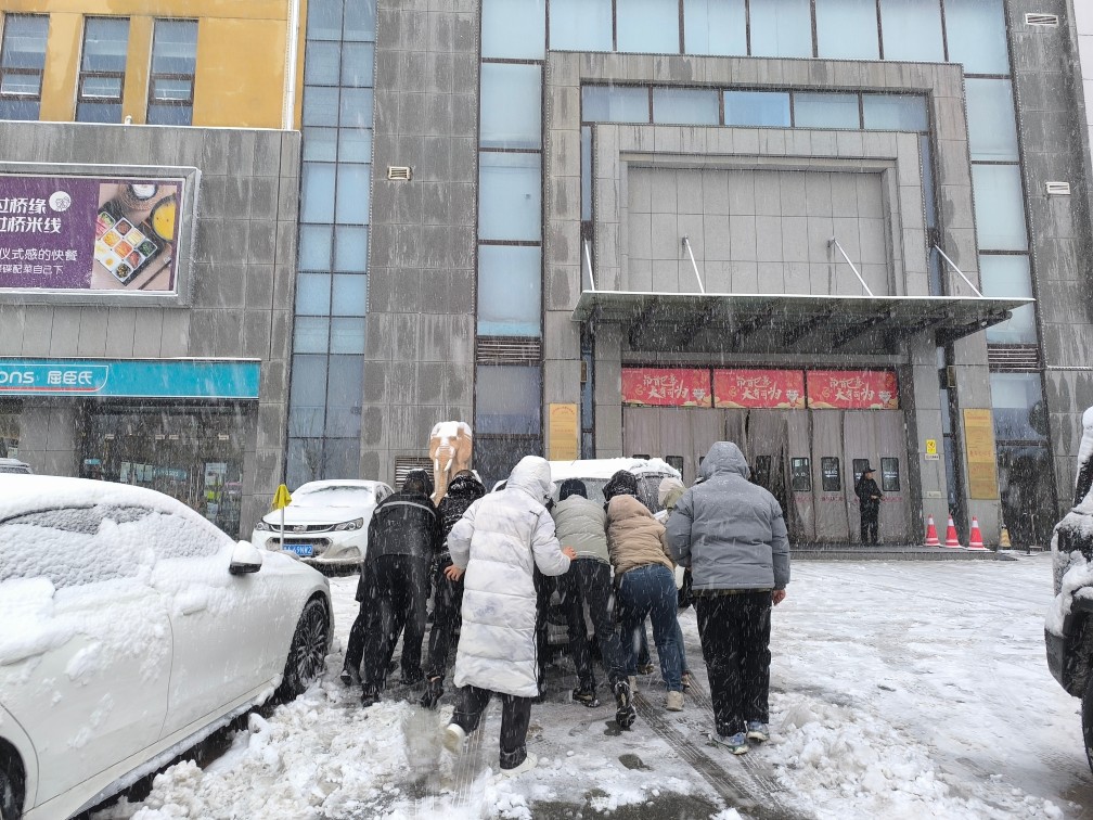 華百電影文化廣場外,大雪依舊飄飄灑灑、尚未停歇的時候,華百商管和物業(yè)人員就已經(jīng)踏上了清掃積雪的征程。在掃雪過程中,偶遇因積雪厚重而無法前行的車輛,他們毫不猶豫地放下手中的工具,匯聚成一股強大的合力,齊心協(xié)力推車前行,一邊精準指揮車輛,一邊奮力推動,最終成功助力車輛脫困。為防止影響車牌的錄入,物業(yè)人不懼寒冷,徒手將一個個車牌上的積雪清除,這一暖心之舉,不僅贏得了車主由衷的感激,更讓市民深切感受到了長田人的溫暖與力量。