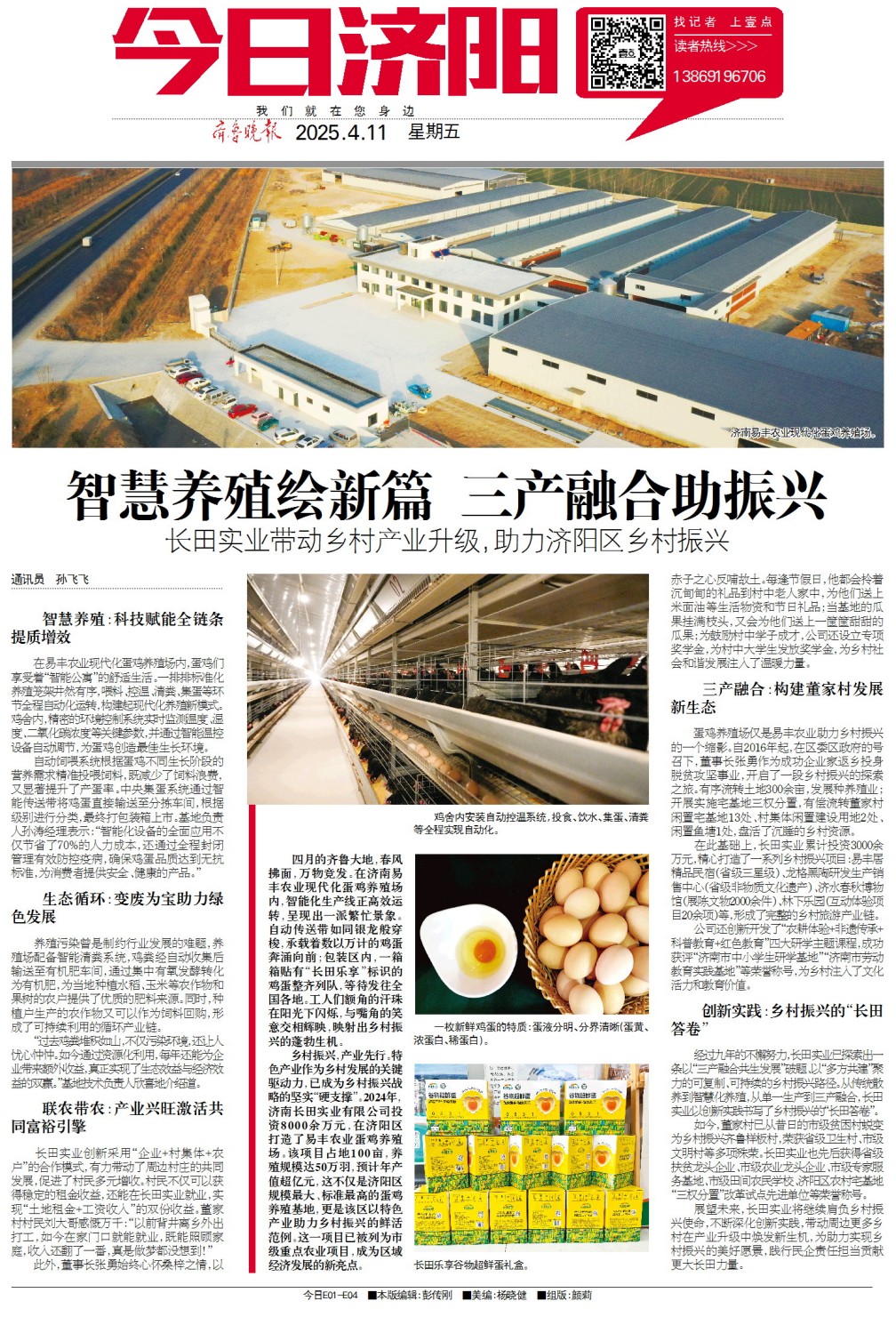 鄉(xiāng)村振興,產(chǎn)業(yè)先行。特色產(chǎn)業(yè)作為鄉(xiāng)村發(fā)展的關(guān)鍵驅(qū)動(dòng)力,已成為鄉(xiāng)村振興戰(zhàn)略的堅(jiān)實(shí)“硬支撐”。2024年,濟(jì)南長田實(shí)業(yè)有限公司投資8000余萬元,在濟(jì)陽區(qū)打造了易豐農(nóng)業(yè)蛋雞養(yǎng)殖場(chǎng)。該項(xiàng)目占地100畝,養(yǎng)殖規(guī)模達(dá)50萬羽,預(yù)計(jì)年產(chǎn)值超億元,這不僅是濟(jì)陽區(qū)規(guī)模最大、標(biāo)準(zhǔn)最高的蛋雞養(yǎng)殖基地,更是該區(qū)以特色產(chǎn)業(yè)助力鄉(xiāng)村振興的鮮活范例,彰顯了“走在前、挑大梁”的責(zé)任擔(dān)當(dāng)。這一項(xiàng)目已被列為市級(jí)重點(diǎn)農(nóng)業(yè)項(xiàng)目,成為區(qū)域經(jīng)濟(jì)發(fā)展的新亮點(diǎn)。