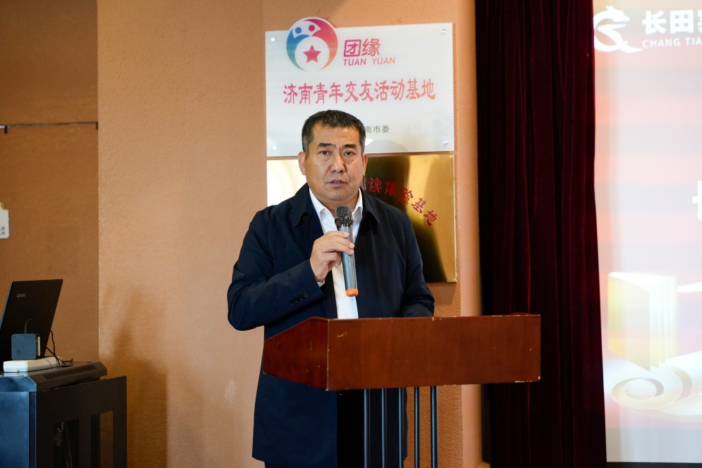 張總對各位領(lǐng)導、嘉賓的到來表示了熱烈的歡迎。他講到,長田書屋的誕生,源于我們對“全民閱讀”號召的響應、對“文化潤城”的樸素信仰。近年來,長田書屋通過持續(xù)舉辦讀書會、作家分享會、親子閱讀,參與“書香濟陽 閱見美好”全民閱讀月等各類文化活動,守護文化根脈、傳遞精神力量。長田實業(yè)也始終關(guān)注鄉(xiāng)村閱讀,去年在長田實踐教育基地設(shè)立了“長田董家鄉(xiāng)村書屋”,作為長田書屋的延伸。一方面將長田書屋豐富的圖書資源引入鄉(xiāng)村,另一方面將鄉(xiāng)村民俗等本土文化元素融入城區(qū)活動,推動城鄉(xiāng)閱讀陣地在資源共享中同頻共振。構(gòu)建起“城市有陣地、鄉(xiāng)村有支點、全域有書香”的立體化閱讀網(wǎng)絡(luò),讓文化的溫暖浸潤市民心田。長田書屋正式加入?yún)f(xié)會,成為濟陽區(qū)首家會員單位,是一份榮譽,更是一次“歸隊”。未來,長田書屋將緊跟協(xié)會步伐,讓優(yōu)質(zhì)閱讀資源如活水般,流向濟陽的每個角落,助力全民閱讀走實走遠。