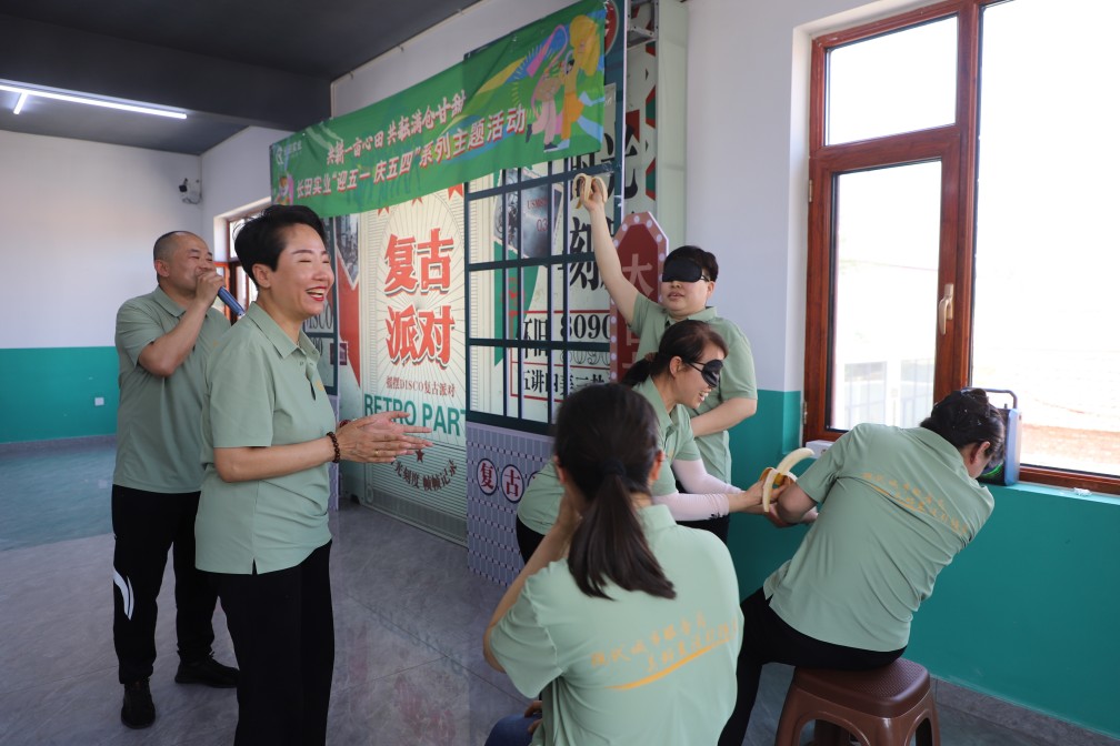餐中設(shè)置的游戲環(huán)節(jié)更是激起了大家的參與熱情,笑聲和歡呼聲此起彼伏。“蒙眼吃香蕉”簡直就是歡樂的源泉!參與者兩兩一組,參與者戴上眼罩原地轉(zhuǎn)圈后迷失了方向,雙手小心翼翼地握著香蕉,一會(huì)兒往左偏,一會(huì)兒往右拐,那手忙腳亂的樣子,真是讓人忍俊不禁,坐著等待的同伴更是“心焦”,恨不得通過聲音指引隊(duì)友。有的摸索著找到隊(duì)友的嘴巴,有的卻誤打誤撞地碰到了隊(duì)友的鼻子,有的甚至直接越過隊(duì)友……現(xiàn)場爆發(fā)出一陣陣歡笑聲。最先吃完香蕉的隊(duì)員興奮得手舞足蹈,獲勝小組在臺(tái)下更是歡呼雀躍。