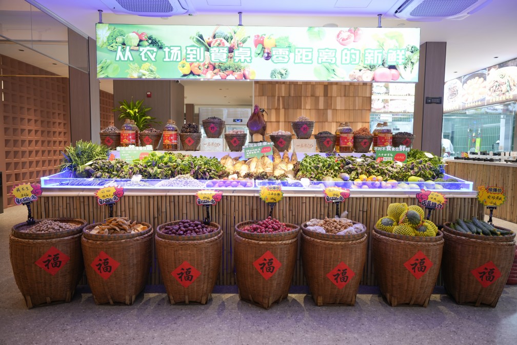 儀式結(jié)束后,嘉賓們共同進(jìn)店參觀指導(dǎo)。城市農(nóng)場(chǎng)餐廳板塊創(chuàng)新打造“黃河文化主題包間群”,以黃河干流途經(jīng)的九大省份及入魯后流經(jīng)的九座城市為命名體系,構(gòu)建起獨(dú)具特色的空間敘事。每個(gè)包間通過魯錦、蜀繡、唐卡、剪紙等非遺藝術(shù)裝置,立體化呈現(xiàn)沿黃地域的文化基因,讓消費(fèi)者沉浸式感受“一河串聯(lián)千年文明”的文化魅力。