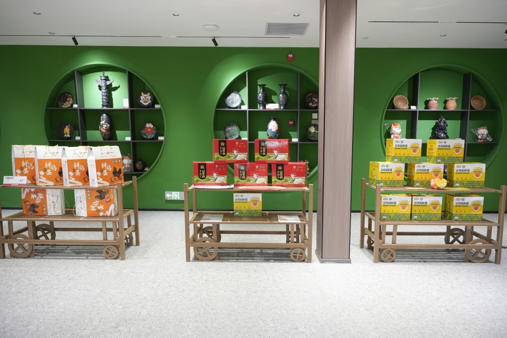 在生態(tài)農(nóng)產(chǎn)品展銷中心,集中展示濟(jì)陽(yáng)本地特色農(nóng)產(chǎn)品,如仁風(fēng)西瓜、曲堤黃瓜、長(zhǎng)田樂享超鮮蛋等。消費(fèi)者餐后可直接選購(gòu)?fù)词巢模纬?/span>“嘗鮮—認(rèn)知—消費(fèi)”閉環(huán)。參與展銷的不止?jié)?yáng)的特色農(nóng)產(chǎn)品,還有濟(jì)陽(yáng)黑陶、濟(jì)陽(yáng)老粗布等濟(jì)北手造產(chǎn)品,黃河文化孕育出的濟(jì)陽(yáng)特色非遺,在這里熠熠生輝。