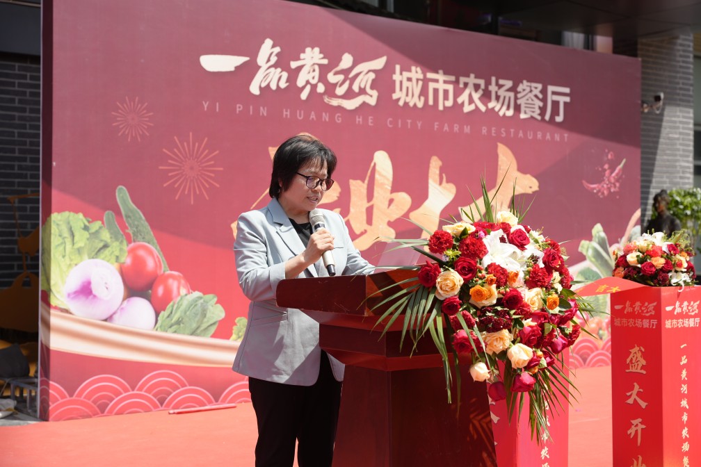 于主席發(fā)表講話,她講到,長(zhǎng)田實(shí)業(yè)以“敢為人先 追求卓越”的精神,深耕七大業(yè)態(tài),從濟(jì)陽(yáng)區(qū)首家城市綜合體到全區(qū)規(guī)模最大、標(biāo)準(zhǔn)最高的蛋雞養(yǎng)殖場(chǎng),從首家泉城紅色物業(yè)到鄉(xiāng)村振興“三產(chǎn)融合共生”模式實(shí)踐,打造了一個(gè)又一個(gè)“濟(jì)陽(yáng)標(biāo)桿”,彰顯了做“現(xiàn)代城市服務(wù)商 美好生活引領(lǐng)者”的企業(yè)精神。她指出,在鄉(xiāng)村振興的征程中,長(zhǎng)田實(shí)業(yè)打造了“萬(wàn)企興萬(wàn)村”濟(jì)陽(yáng)樣板。如今的濟(jì)陽(yáng)街道董家村,街道整潔、民居錯(cuò)落,研學(xué)團(tuán)隊(duì)不斷,省級(jí)非遺龍格黑陶研發(fā)中心與濟(jì)水春秋博物館盡顯文化底蘊(yùn)。從市級(jí)貧困村到“全國(guó)文明村”,董家村的蝶變,正是長(zhǎng)田實(shí)業(yè)產(chǎn)業(yè)反哺鄉(xiāng)村、情懷融入熱土的真實(shí)寫照。她強(qiáng)調(diào),一品黃河是濟(jì)陽(yáng)首個(gè)以黃河文化為主題、以三產(chǎn)融合為路徑的鄉(xiāng)村振興項(xiàng)目,創(chuàng)造三個(gè)“新”:搭建農(nóng)產(chǎn)品銷售新平臺(tái),對(duì)接濟(jì)南市場(chǎng),推廣濟(jì)陽(yáng)農(nóng)業(yè)品牌;成為農(nóng)民增收新引擎,直采模式縮短鏈條,實(shí)現(xiàn)雙向共贏;樹立餐飲經(jīng)營(yíng)新標(biāo)桿,非遺元素與特色菜品融合,注入文化內(nèi)涵。她希望,長(zhǎng)田實(shí)業(yè)以此次開業(yè)為新起點(diǎn),繼續(xù)發(fā)揮龍頭企業(yè)的帶動(dòng)作用:與農(nóng)戶手拉手,深耕訂單農(nóng)業(yè),讓更多田間好物走向高端市場(chǎng);與市民心連心,做優(yōu)消費(fèi)體驗(yàn),讓黃河文化通過舌尖走進(jìn)更多人心中。我們也將始終做好服務(wù),以政策扶持、資源對(duì)接、營(yíng)商環(huán)境優(yōu)化為抓手,為企業(yè)發(fā)展保駕護(hù)航,讓“萬(wàn)企興萬(wàn)村”的生動(dòng)實(shí)踐在齊魯大地結(jié)出更多碩果!