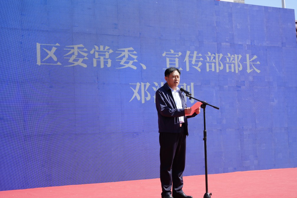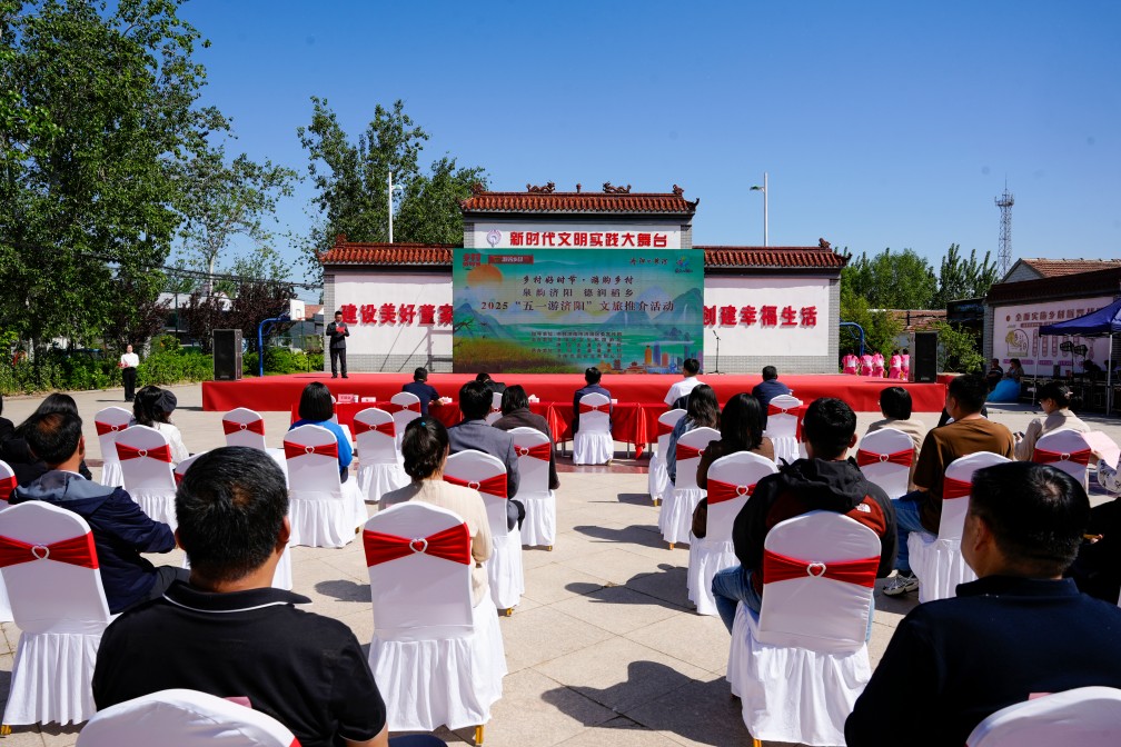 鄧部長(zhǎng)在活動(dòng)中發(fā)表致辭。他講到,濟(jì)陽(yáng),一座非遺活態(tài)傳承的“文化寶庫(kù)”。黃河奔涌千年,孕育了濟(jì)陽(yáng)獨(dú)特的人文基因。這里有起源于龍山文化的黑陶工藝,泥火交融間淬煉出“黑如漆、亮如鏡”的千年技藝;有列入國(guó)家非遺的鼓子秧歌,田間地頭的質(zhì)樸舞步,跳出了黃河兒女的豪邁氣魄;更有鉤繡、柳編等非遺手藝,一針一線、一編一織,凝結(jié)著濟(jì)陽(yáng)人民的智慧與匠心。他指出,五一正值春末夏初,濟(jì)陽(yáng)大地瓜果飄香、稻田如畫:在“中國(guó)西瓜之鄉(xiāng)”仁風(fēng),采摘“富硒西瓜”,品味清甜;在垛石番茄園,體驗(yàn)“柿”界奇妙,感受豐收喜悅;漫步稻田研學(xué)基地,盡收“稻花香里說(shuō)豐年”的田園意境……更有非遺手造市集、黃河美食盛宴、民俗文化展演等等,可在沉浸式體驗(yàn)中觸摸黃河文化脈絡(luò),共享“詩(shī)與遠(yuǎn)方”。他表示,五一期間,將推出系列惠民政策,讓游客感受濟(jì)陽(yáng)人的熱情與真誠(chéng)。