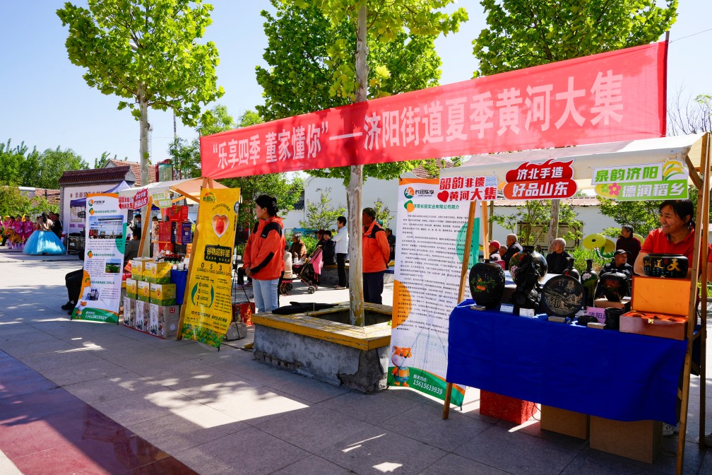 非遺展臺(tái)集中呈現(xiàn)黑陶制作、彩塑、烙畫、木版年畫等文化遺產(chǎn),領(lǐng)導(dǎo)們通過(guò)非遺傳承人的講述,感受技藝背后的歷史積淀,鼓勵(lì)非遺項(xiàng)目走出深閨、走向市場(chǎng),融入現(xiàn)代生活,實(shí)現(xiàn)“雙創(chuàng)”發(fā)展。濟(jì)北手造展臺(tái)則匯聚黃河沿岸的民間手造精品,既有老粗布、鉤繡等傳統(tǒng)工藝,也有融入現(xiàn)代設(shè)計(jì)的黑陶文創(chuàng)產(chǎn)品,凸顯匠心與創(chuàng)新的結(jié)合。此外,還有以長(zhǎng)田樂(lè)享超鮮蛋、烏棗、小磨香油、永慶昌熟食、肖家酥火燒等在地食材為亮點(diǎn),展示了濟(jì)陽(yáng)“北緯37度黃金農(nóng)業(yè)帶”的優(yōu)質(zhì)農(nóng)產(chǎn)品,成為鄉(xiāng)村振興的特色名片?;顒?dòng)通過(guò)場(chǎng)景化體驗(yàn)與資源整合,進(jìn)一步塑造了濟(jì)陽(yáng)文旅品牌,推動(dòng)區(qū)域高質(zhì)量發(fā)展。