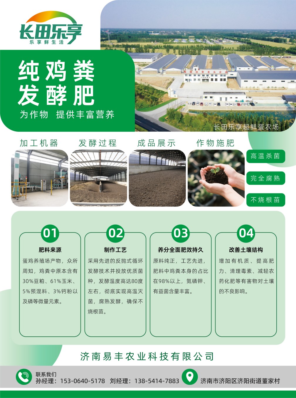 雞糞經(jīng)過加工后,制作成富含有機質(zhì)、蛋白質(zhì)、多種氨基酸、多種微量元素及有益菌群的有機肥料,它能顯著改良土壤結(jié)構(gòu),增加團粒,提升保水保肥能力;活化土壤微生物群落,加速養(yǎng)分釋放,抑制土傳病害;提供全面均衡的養(yǎng)分,為農(nóng)作物生長打下堅實基礎(chǔ)。使用“長田樂享”發(fā)酵雞糞,意味著瓜果更甜、蔬菜更鮮、糧食更香,是生態(tài)種植、提質(zhì)增效的首選。