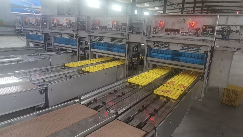 ▲標(biāo)準(zhǔn)化、智能化的雞蛋分揀設(shè)備將雞蛋按照大小、重量進行精準(zhǔn)分類
