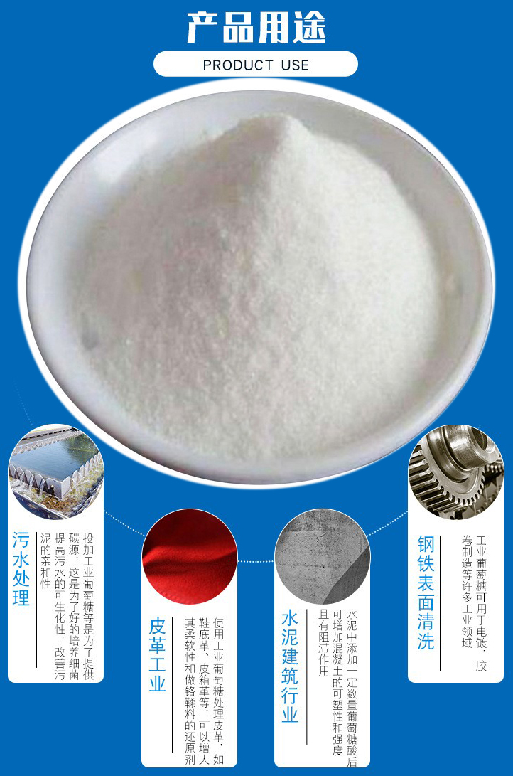 2、工業(yè)級(jí)葡萄糖皮革工業(yè)使用處理皮革,如鞋底革、皮箱革等,可以增大其柔軟性和做鉻鞣料的還原劑。